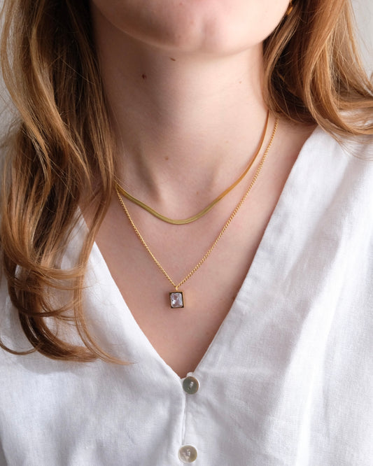 Panser Facet Halskæde med Ædelsten Vedhæng