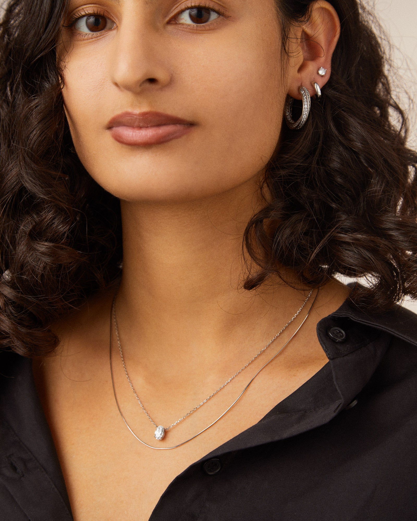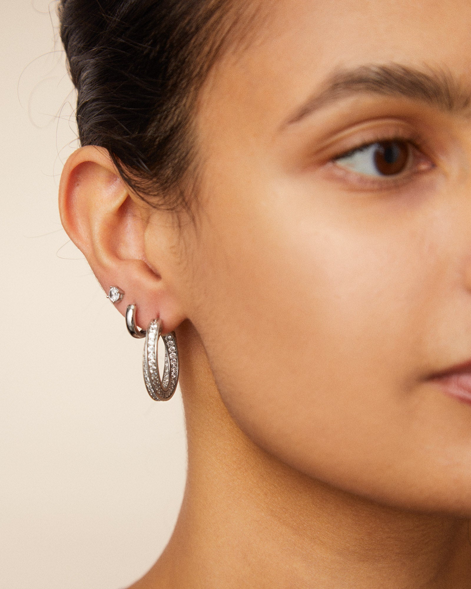 Meet our bold yet elegant Crystal Earrings with a twist. If you're after that extra sparkle that makes a statement, these earrings have a voice of their own. Whether worn solo for a stunning effect or paired with our small classic hoops for a casual flair, the Esther Earrings are a captivating choice. The hoops are adorned with dazzling Zirconia gemstones, ensuring they shine through and stand out.