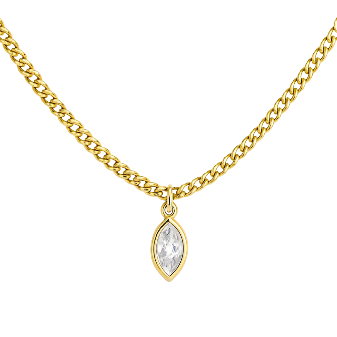 Vores Panser Facet Halskæde med Ædelsten Vedhæng kombinerer et unikt design med funklende ædelsten for et iøjnefaldende udtryk. Dette halskæde tilføjer dybde og karakter til ethvert outfit, og ædelstenene giver et strejf af luksus.
